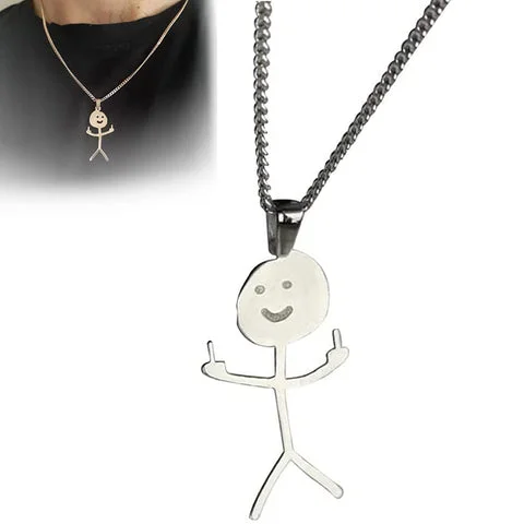 Then this necklace is the perfect choice. This silver-plated necklace features a graffiti pendant. It's cool to wear and perfect for your outfit.