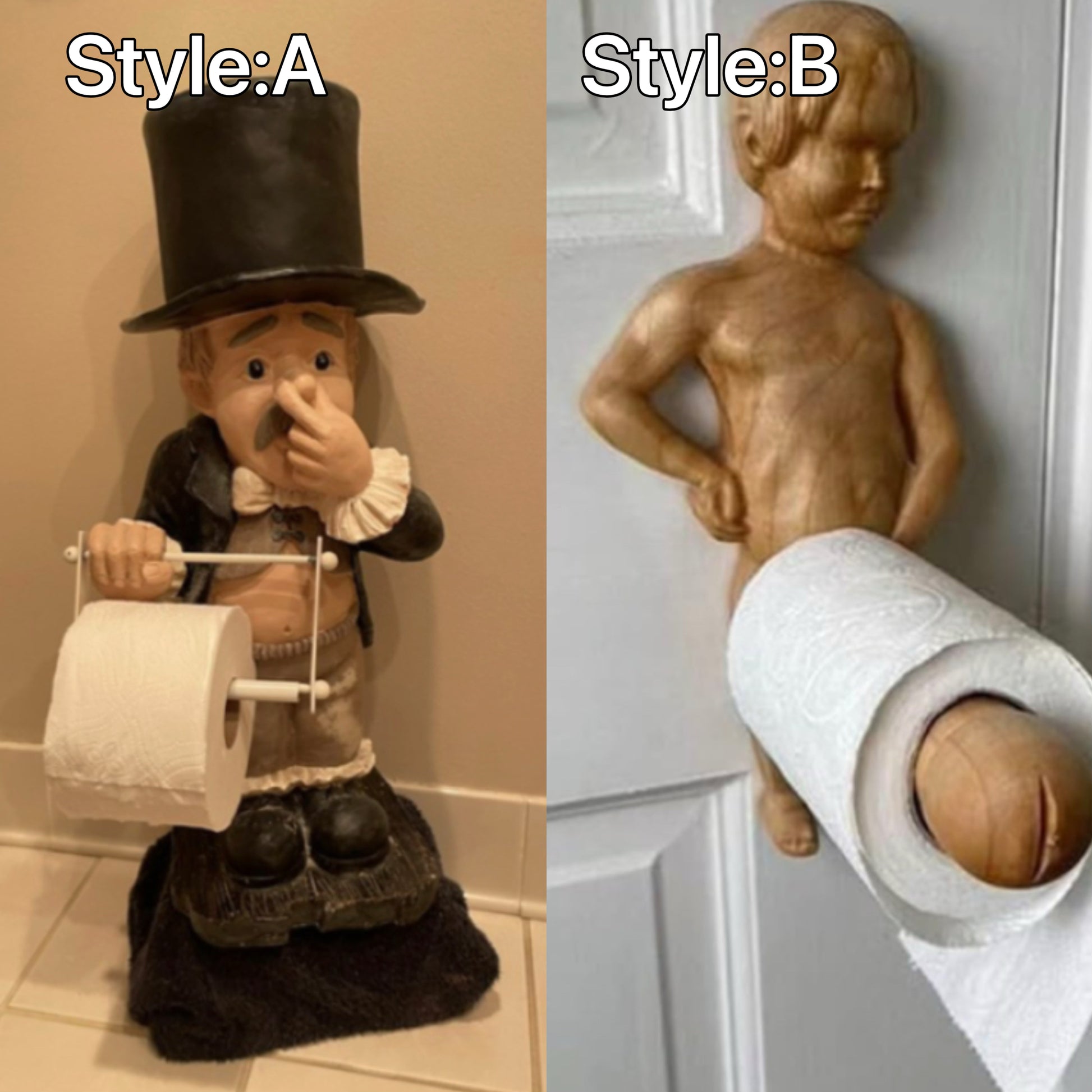 Meet your new bathroom butler! He’ll quickly become popular with your family and friends, and he’s always well-equipped with a roll of toilet paper! Now if only he could change his own roll…