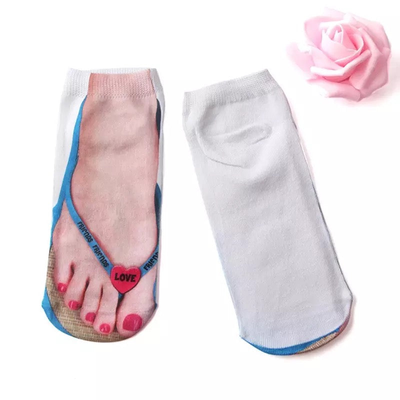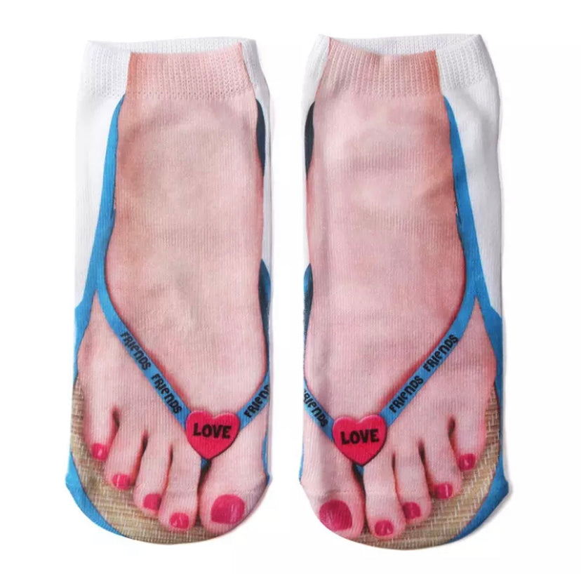 No need to sacrifice your summer styles! Our Funny Flip Flop Socks are designed to make it look like you're wearing sandals. Get yours and let people guess whether those are your actual feet!