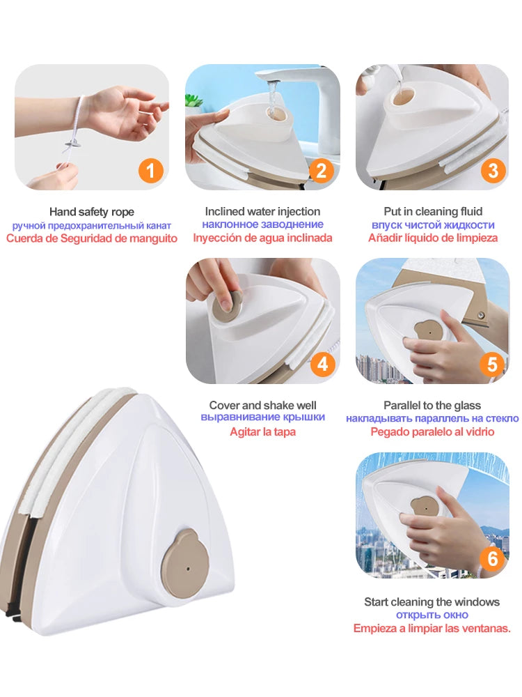 The Magnetic Window Cleaner has 2 natural rubber wipers, 1 on each side, ensures perfect cleaning, and leaves no scratches. Designed with a safety rope to prevent the cleaner from falling and a scratch prevention strip to avoid scratches on your windows.