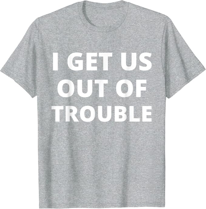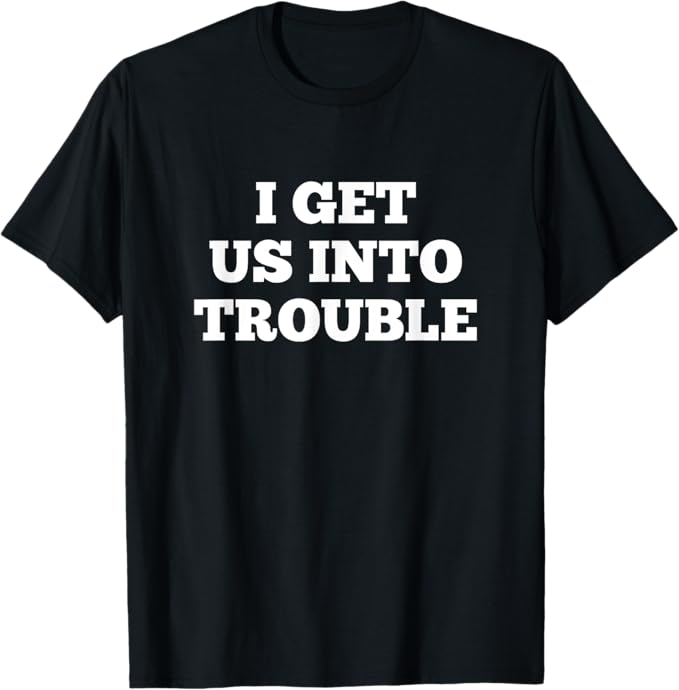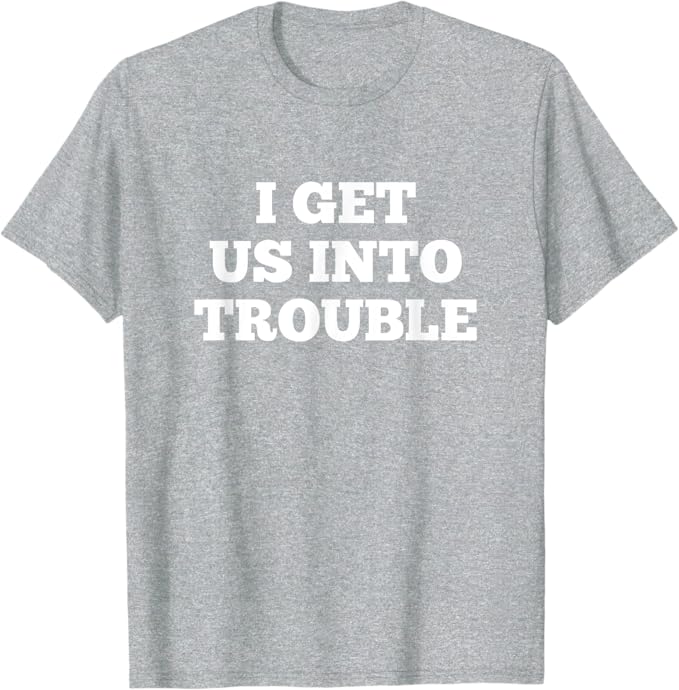 I Get Us Into Trouble I Get Us Out Of Trouble , Matching Shirts for Best Friends. Visit the brand name for both versions please. Cool matching best friend gifts.Classic cut, double-stitched hem.
