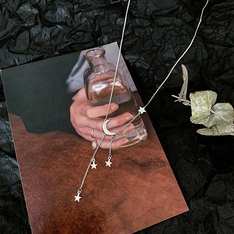 ⊹ Intricate array of cubic zirconia on a sterling silver moon with a star accent. Dainty and very beautiful to wear. • It’s the perfect celestial necklace for stylish 2022 ladies! ⊹