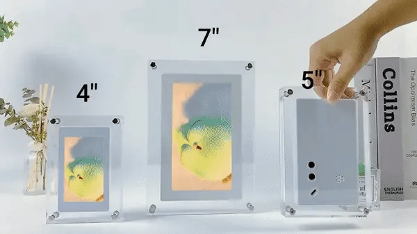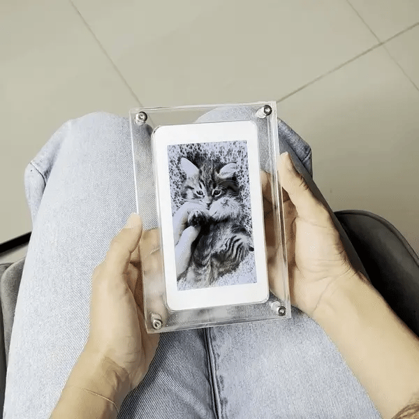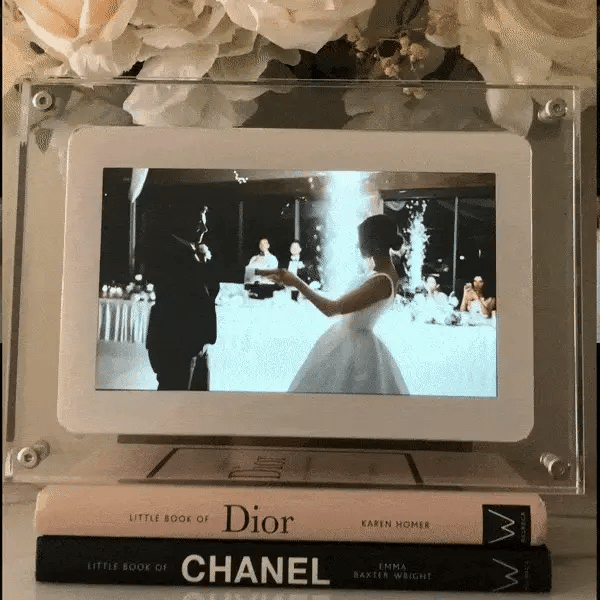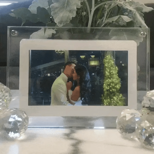 A gorgeous acrylic frame with LCD screen display that allows you to infinitely loop the most precious memories that you captured via video.
