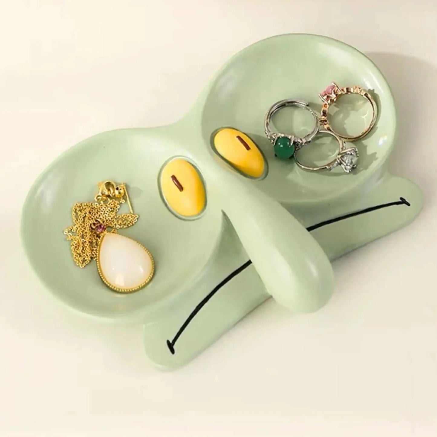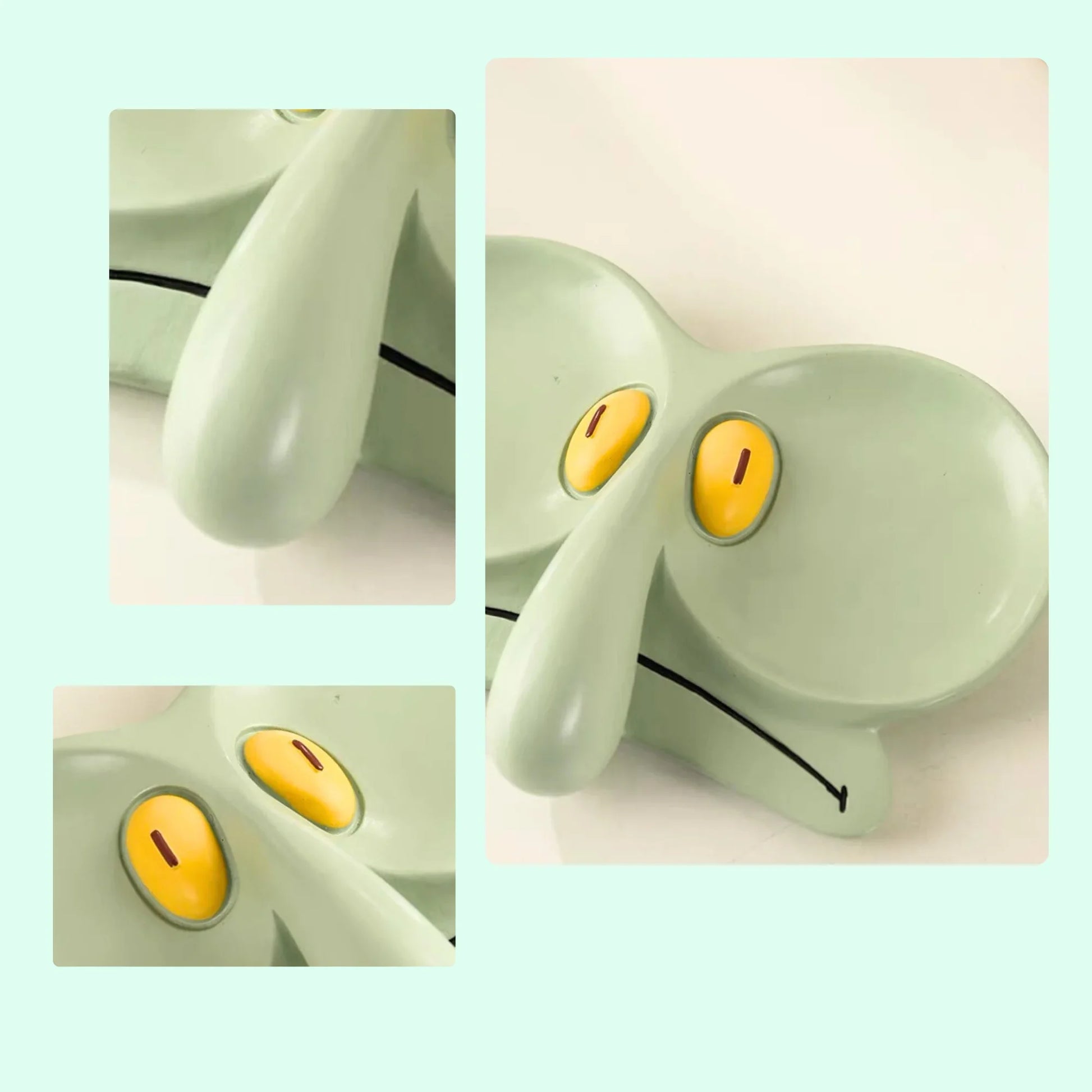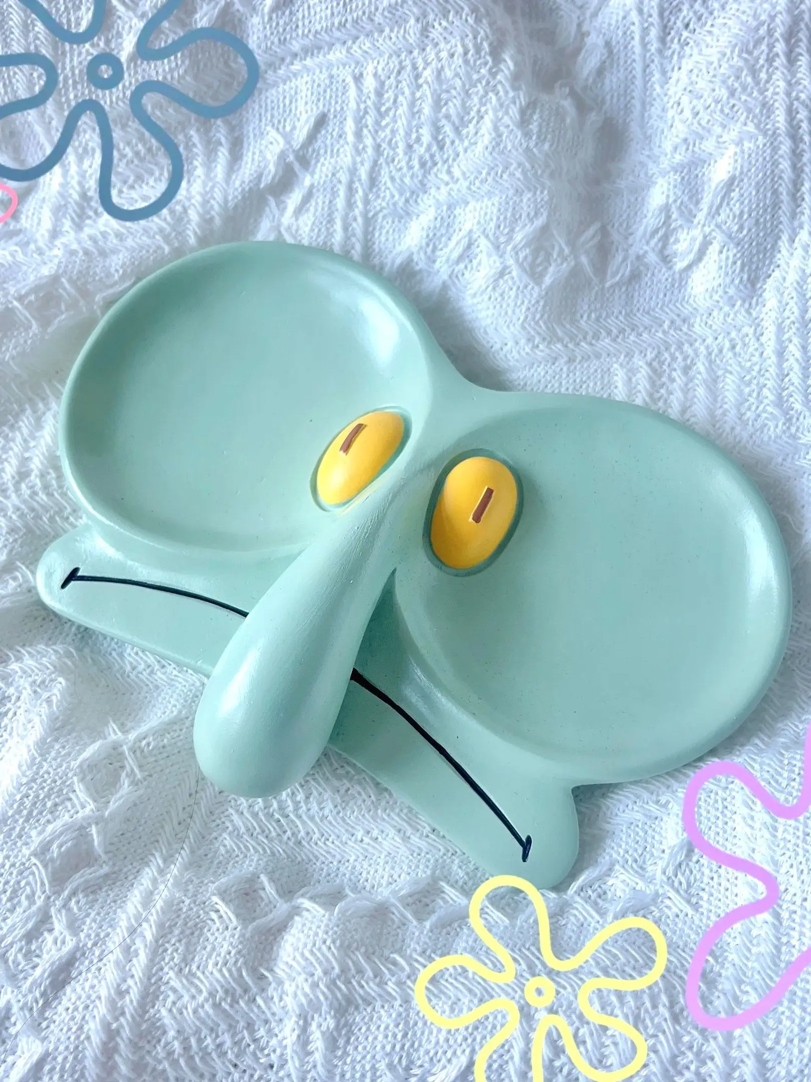 Introducing our handmade resin Eyeglass storage tray inspired by Squidward from SpongeBob SquarePants! 🐙 This original design is perfect for home decor, adding a touch of whimsy to your space. The entire piece features the iconic mint green color of Squidward and showcases his distinctive large nose.