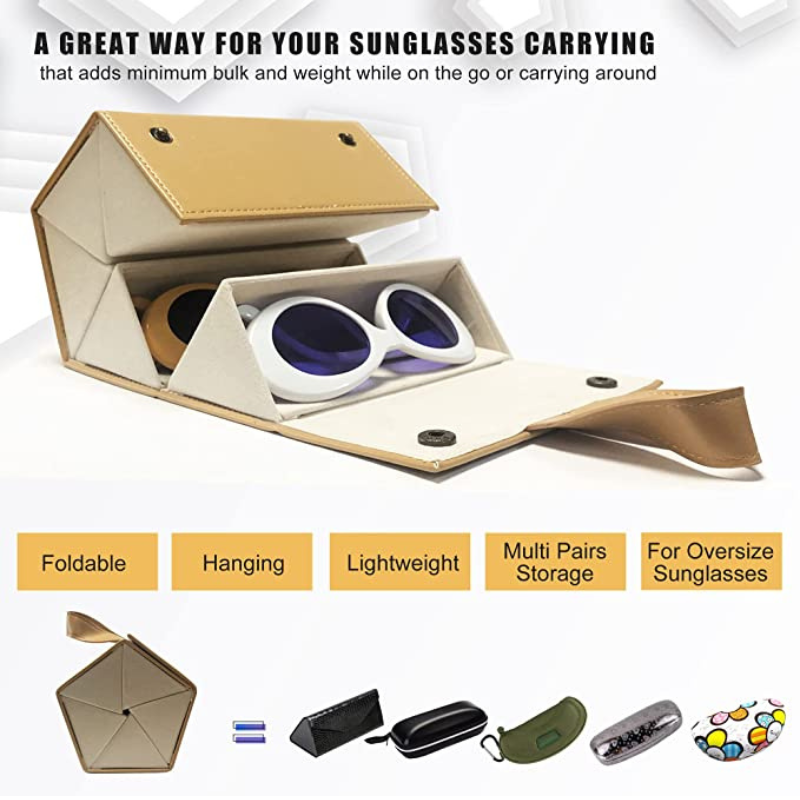 - CONVENIENT: With five spacious slots, this organizer can hold up to five pairs of sunglasses, making it an ideal storage solution for any sunglasses enthusiast.
