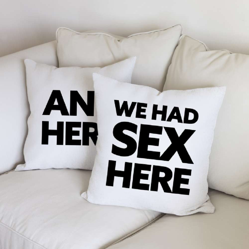 ADD A CHEEKY TOUCH TO YOUR HOME DECOR WITH OUR ‘WE HAD SEX HERE’ LINEN PILLOW COVER! 😏💕